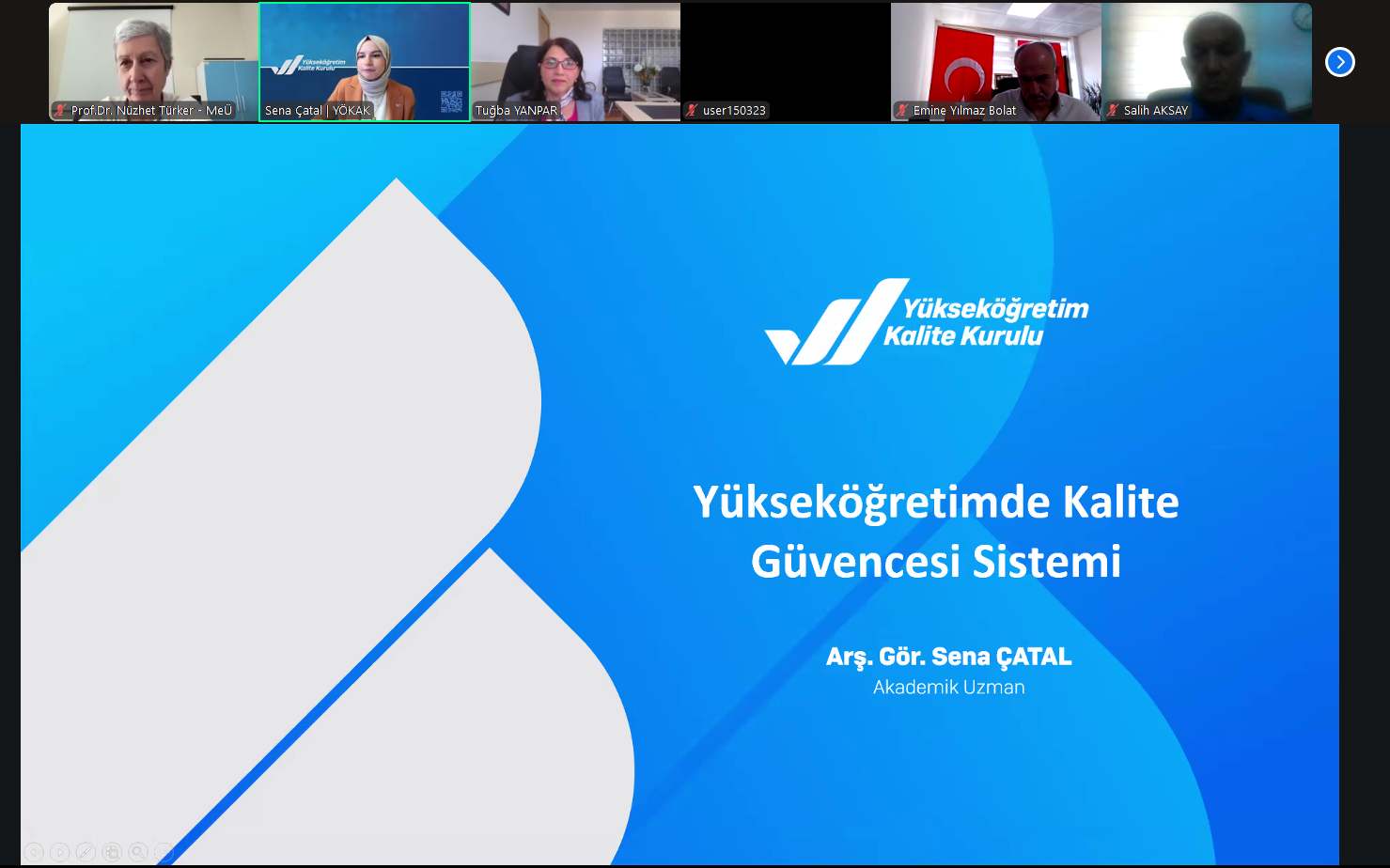 Üniversitemizde “Yükseköğretim Kalite Güvencesi” konulu seminer düzenlendi. 22 Eylül Pazartesi günü çevrim içi olarak gerçekleştirilen seminere, Rektörümüz Prof. Dr. Erol Yaşar, Üniversitemiz Kalite Komisyonu ile aka