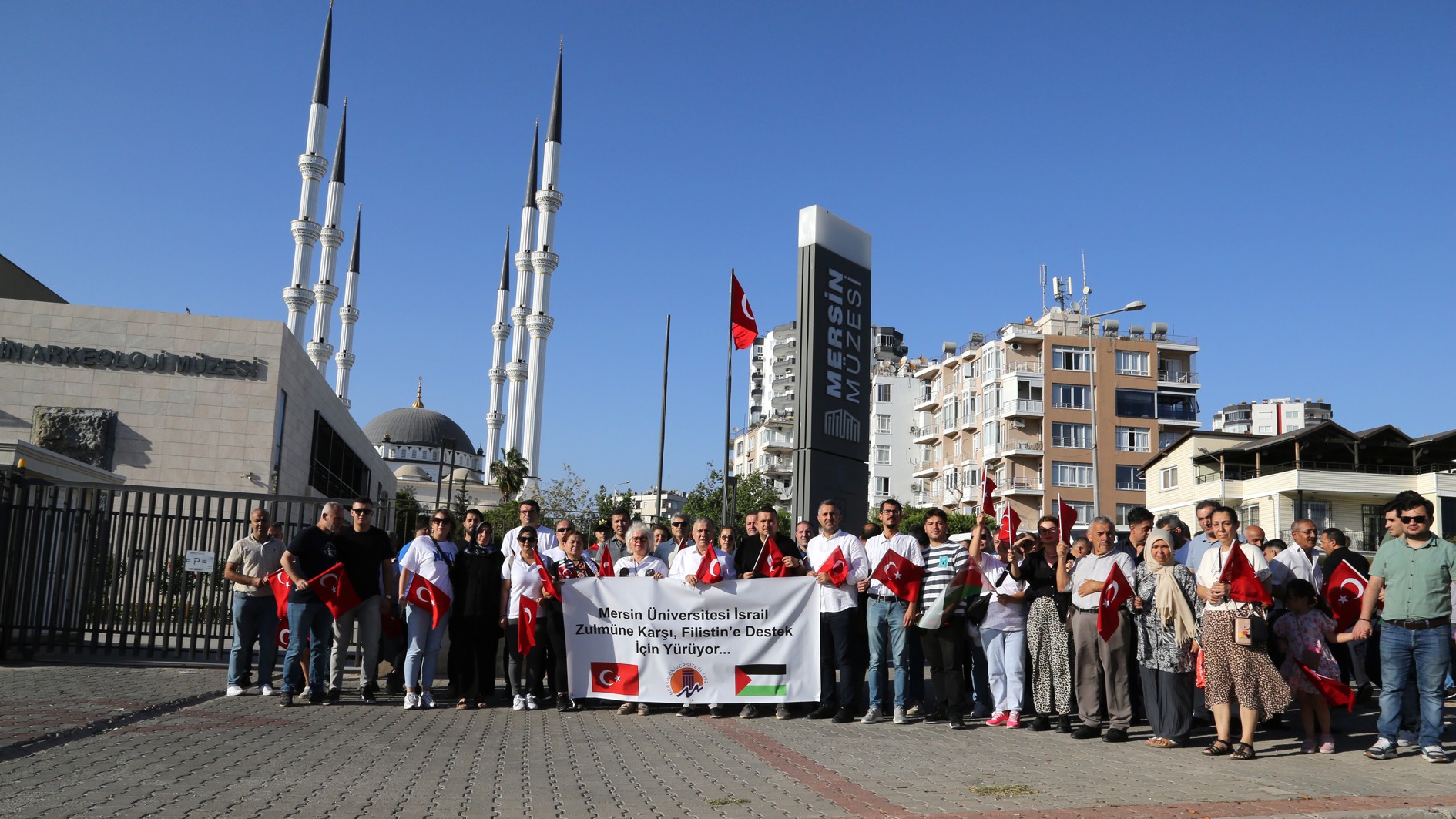 Mersin Üniversitesi Ailesi olarak Filistin halkının haklı mücadelesine ses olmak için düzenlenen yürüyüşe katıldıklarını belirten Rektörümüz Prof. Dr. Erol Yaşar, “İnanıyoruz ki bugün hem Mersin’de hem de Türkiye’nin dört bir yanında düzenlenen bu kararlılık yürüyüşlerinde yükselen ses, adaletin, insanlığın ve vicdanın sesi olacaktır. Bizler, Mersin Üniversitesi olarak zulmün karşısında, mazlumun yanında olmayı bir insanlık görevi olarak görüyoruz. Dileğimiz; tüm dünyanın, Filistin halkının yaşadığı bu büyük acıya kayıtsız kalmaması, uluslararası hukukun ve insan haklarının bir an önce tesis edilmesidir. Bu duygu ve düşüncelerle Gazze’de yaşanan dramın son bulduğu, barışın ve adaletin hâkim olduğu bir dünya umuduyla mücadelemizi sürdüreceğimizi ifade ediyor, Filistin halkının her zaman yanında olduğumuz belirtmek istiyorum.” dedi.