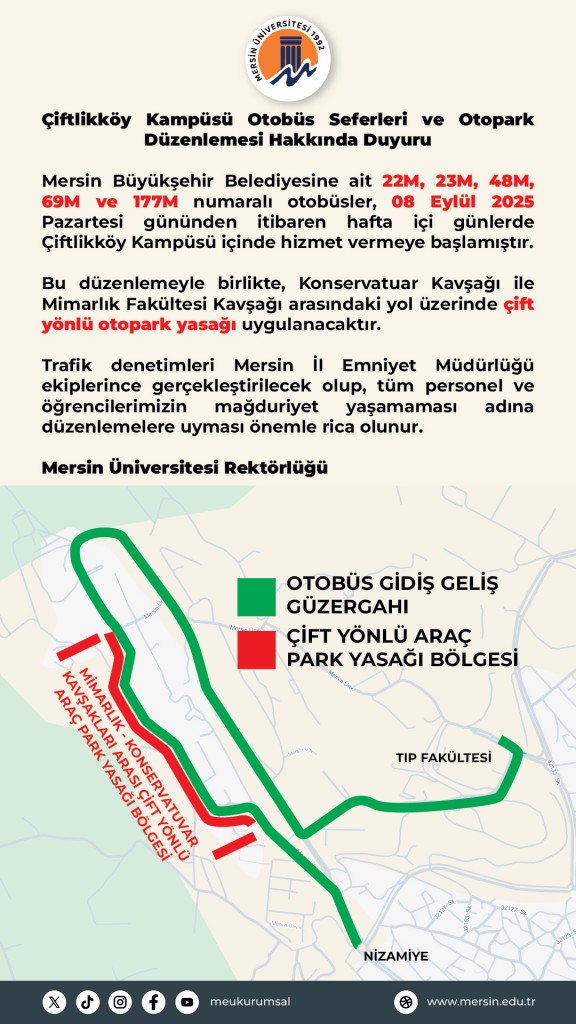 Üniversitemiz Çiftlikköy Kampüsü Otobüs Seferleri ve Otopark Düzenlemesi